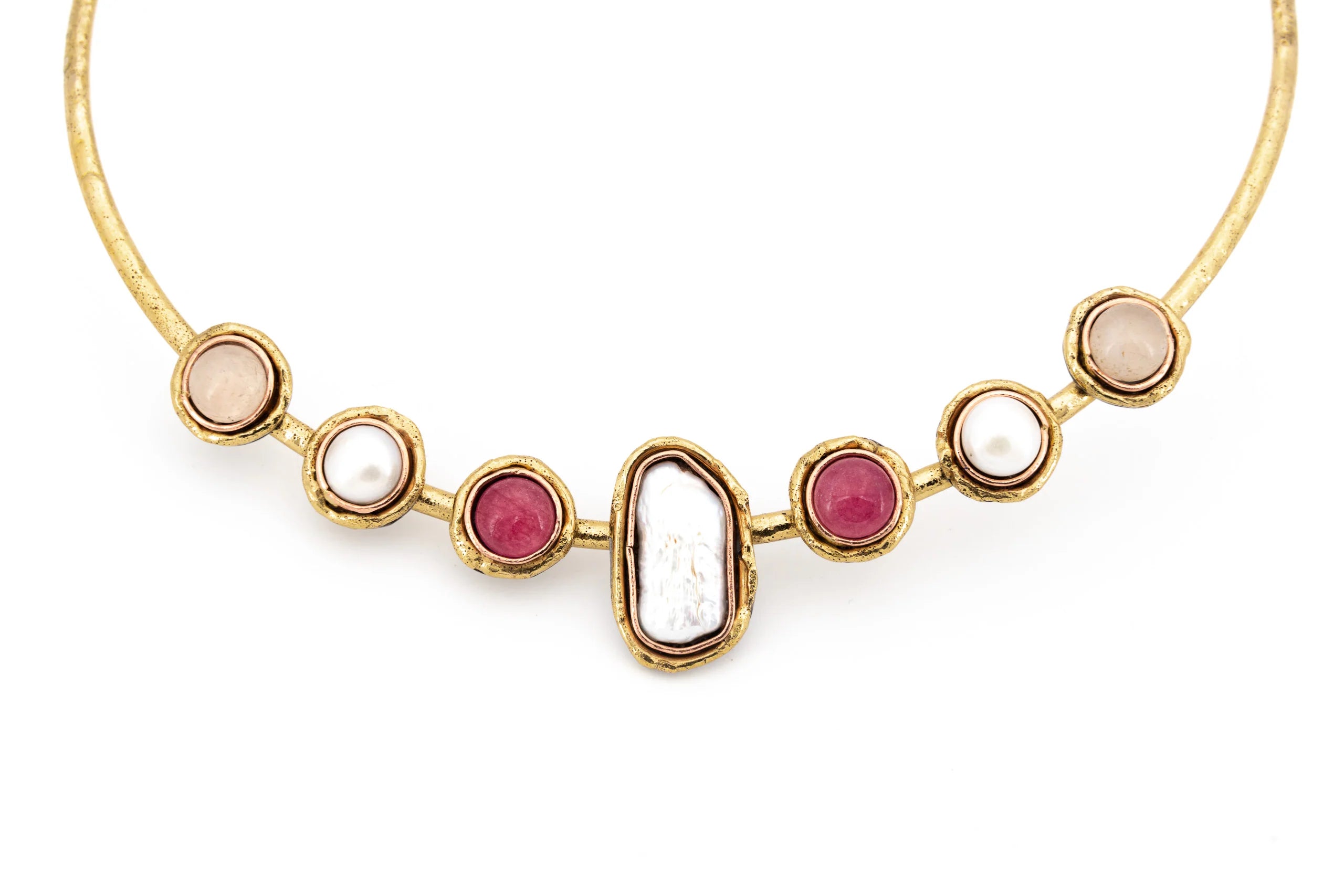 Collana Girocollo in Ottone e Pietre Naturali